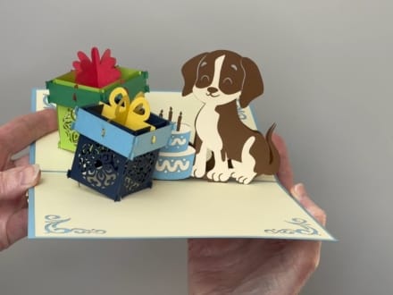 • Popcards.nl pop up kaart hondje met cadeaus